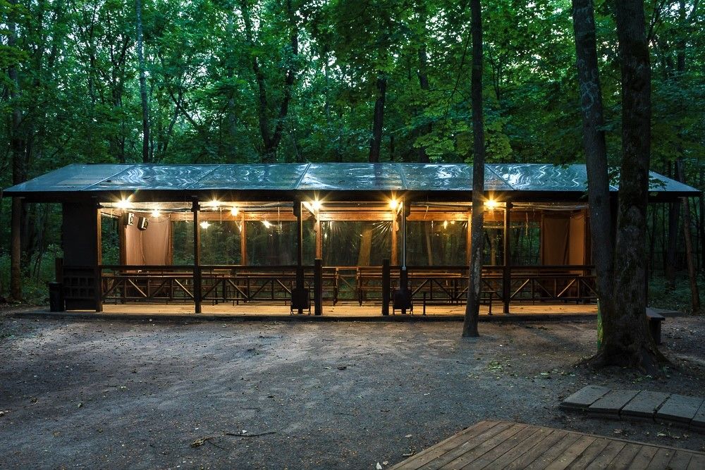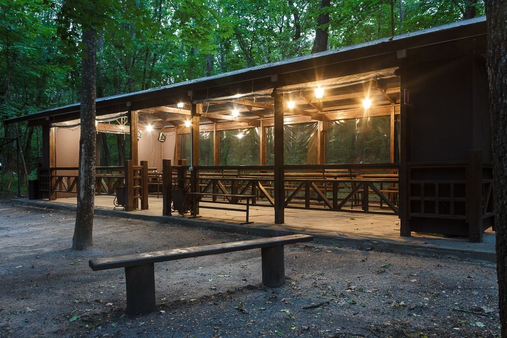 База отдыха «Алмаз» предлагает уютную летнюю беседку, идеально подходящую для банкетов на свежем воздухе, вмещающую до 35 человек. Пространство обустроено современной мебелью, освещением и музыкальным центром, а мягкие окна защищают от непогоды и ультрафиолета, создавая комфортную атмосферу.