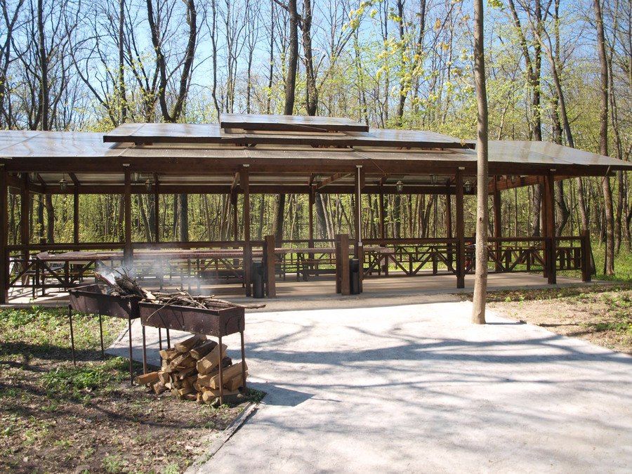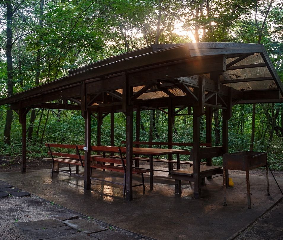 В непосредственной близости находится мангальная зона под навесом, а также обеспечены удобства с двумя отдельными туалетами и умывальниками. Беседка доступна для аренды с девяти часов утра до десяти вечера.