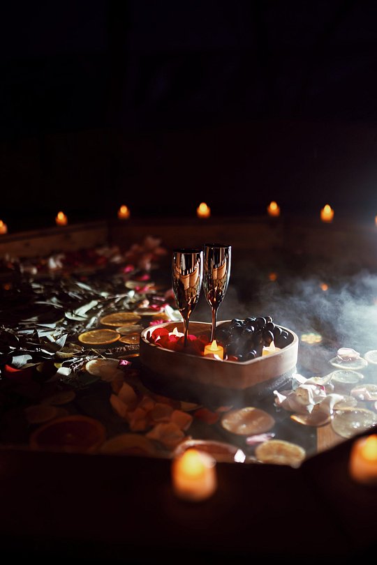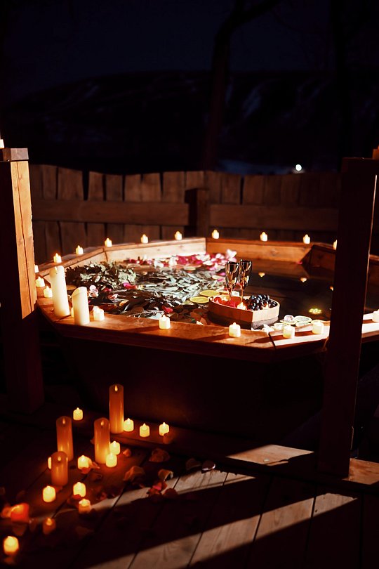 Незабываемый вечер, наполненный теплом и расслаблением. Наслаждайтесь горячими водами чанa на свежем воздухе, окружённые живописной природой. В предложении — не только комфортная обстановка, но и возможность заказать вкусные закуски и напитки, чтобы сделать ваше свидание ещё более особенным.