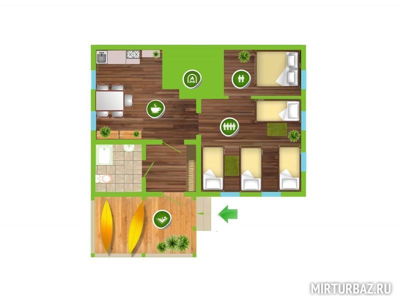 Уютная комната в гостевом доме, рассчитанная на проживание 4 человек.