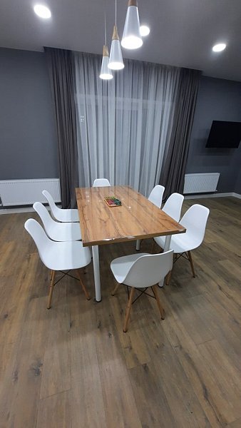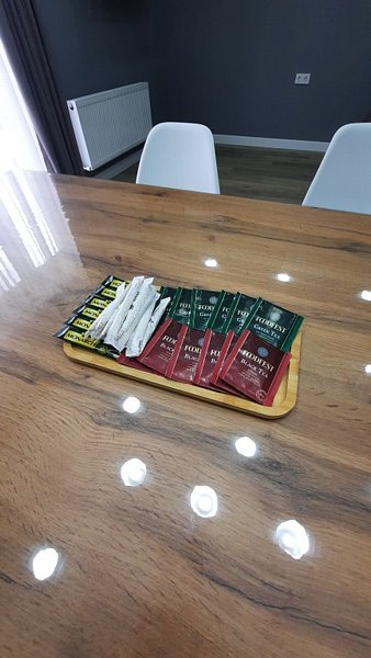 Дом новый, ортопедические матрасы, новая мебель. Полное соответствие тому, что представлено на фото. В доме может разместиться 6 человек (2+2+2). Wi-fi, тв, кондиционер в каждой комнате, стиральная машина, утюг, гладильная доска, холодильник, микроволновая печь, электрический чайник, фен, набор посуды и столовых приборов на всех, чистые полотенца, постельное бельё, средства личной гигиены, чай/кофе/вода.