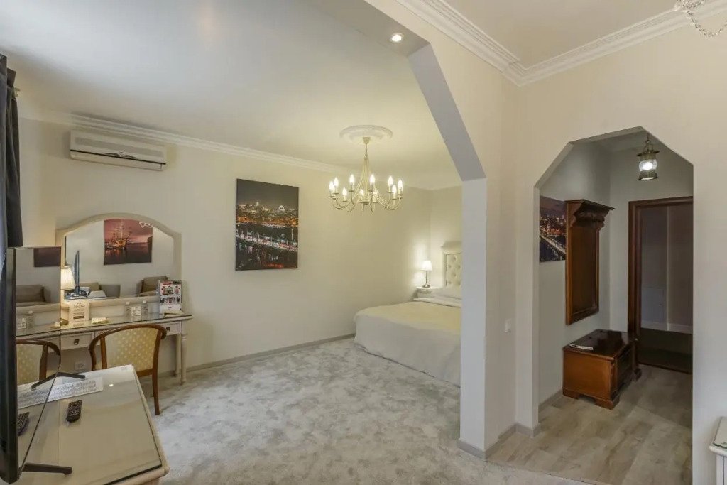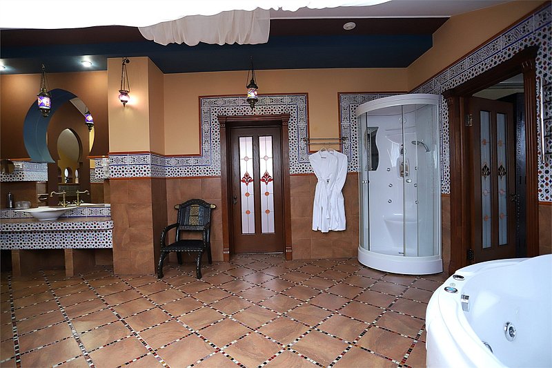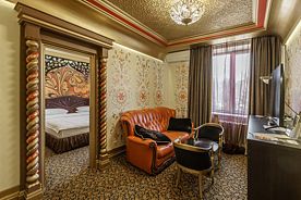 Роскошный двухкомнатный номер, состоящий из гостиной, спальни, ванной комнаты и собственной кухни. На выбор предоставляются два номера: «Марокканский» и «Президентский».