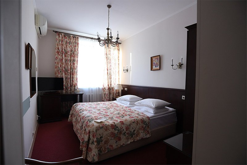 Номера Standart расположены на втором и третьем этажах с видом на площадь про отеле и лесопарковую зону. В номерах будет комфортно как гостям, находящимся в деловой поездке, так и молодой паре.