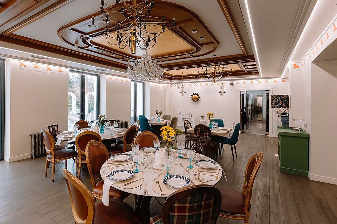 Банкетный зал, расположенный в лесопарковой зоне отеля, среди дубов, прогулочных аллей и лавандовых зарослей — прекрасная площадка для проведения торжеств. Зал оборудован сценой и большим экраном. Современная система кондиционирования воздуха и отопления позволяет всегда поддерживать комфортные условия для гостей. Банкетный зал без труда примет до 200 человек. Бесплатный Wi-Fi и парковка для гостей ресторана.