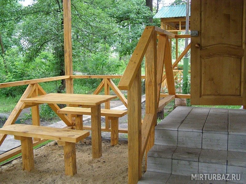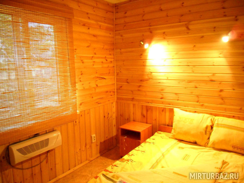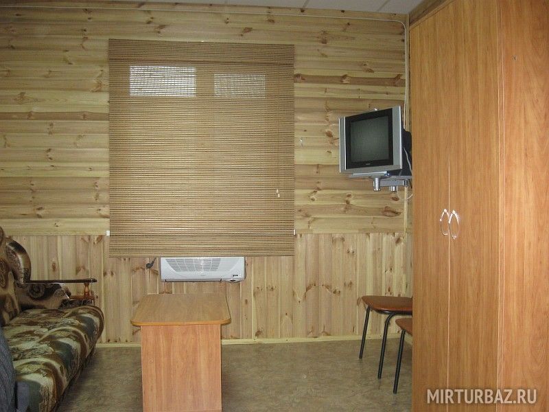 Деревянный стилизованный корпус на 7 номеров с раздельными входами. Одна комната.