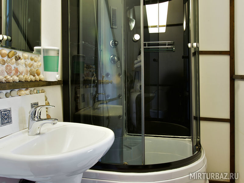 В номере: двуспальная кровать, шкаф, телевизор, сан. узел, душевая кабина, фен, комплект полотенец, косметические принадлежности.