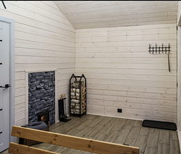 Убедительно просим не обрывать ветки елок на территории домиков. Если хочется украсить купель, вы можете погулять по лесу рядом с участком.