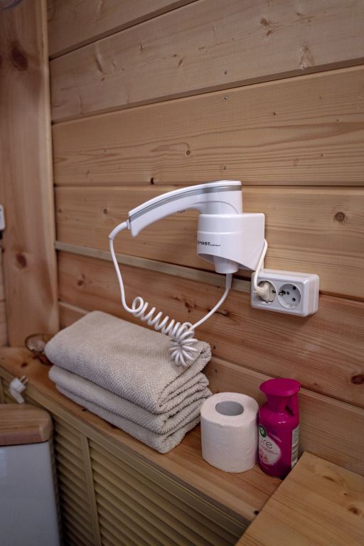 40 кв .м., кровать 180 см, сан узел с душевой кабиной, TV, Wi-Fi, полотенца, косметические принадлежности, тапочки, халаты, подушки с эффектом памяти, ортопедический матрас, холодильник, чайник, столик и стулья, окна на лес, мебель из натурального дерева.