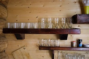 Рядом располагается настоящая русская баня на дровах. Оплачивается отдельно — 1500 ₽ / 2 часа.