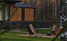 Круговая крытая терраса вокруг дома разделена на три зоны отдыха, а большой участок располагает собственным выходом к лесному озеру, где находятся гамак, уютные кресла и лежаки для загара. Вечером территория освещается аутентичной подсветкой костровой зоны, создавая атмосферу уюта.