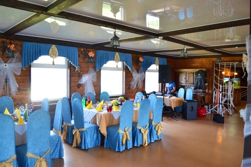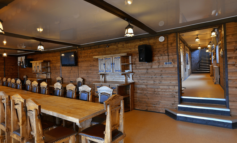 Вместимость: 60 человек. Выполнен в старорусском и морском стиле.