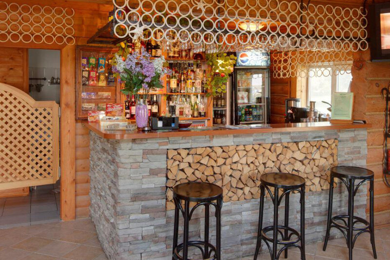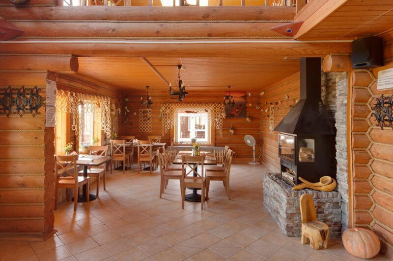Двухэтажное здание в русском стиле на 60 посадочных мест. В большом двухэтажном ресторане повара предложат вам испробовать по домашнему вкусные блюда русской и европейской кухни. Ресторан использует только экологически чистые продукты выращенные в Угличском районе, а также овощи выращенные на базе отдыха.