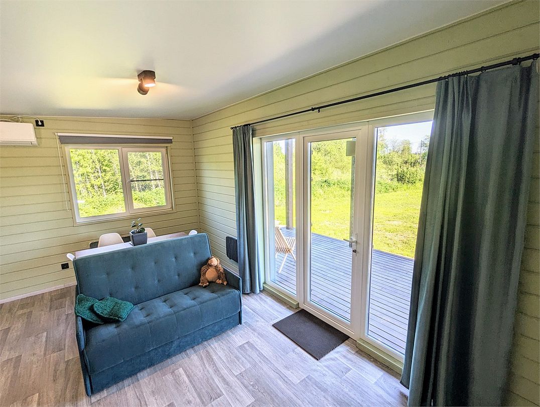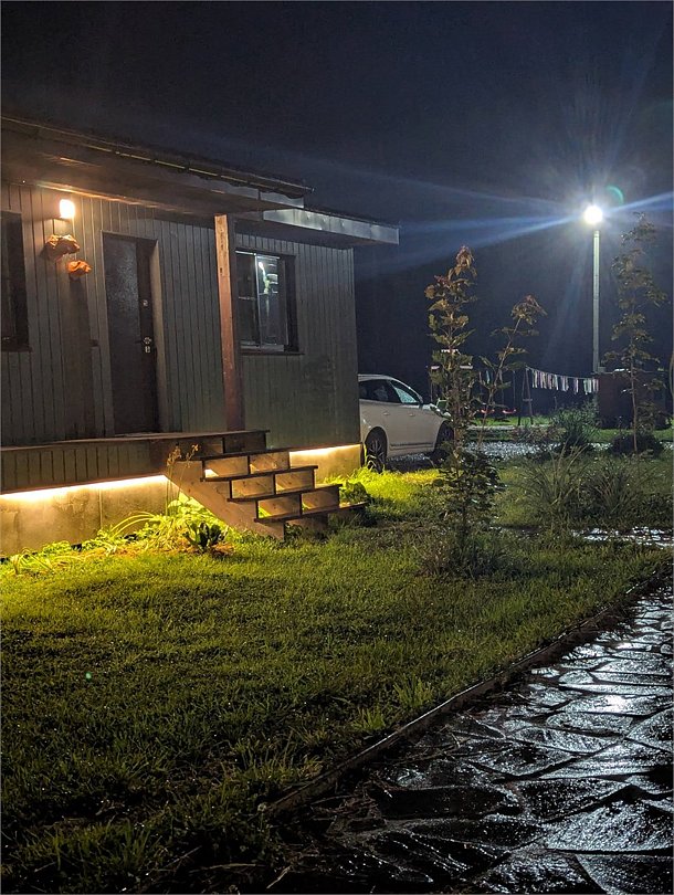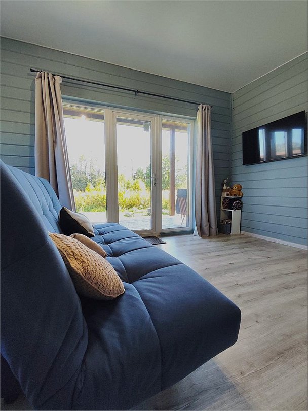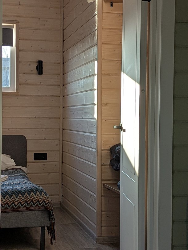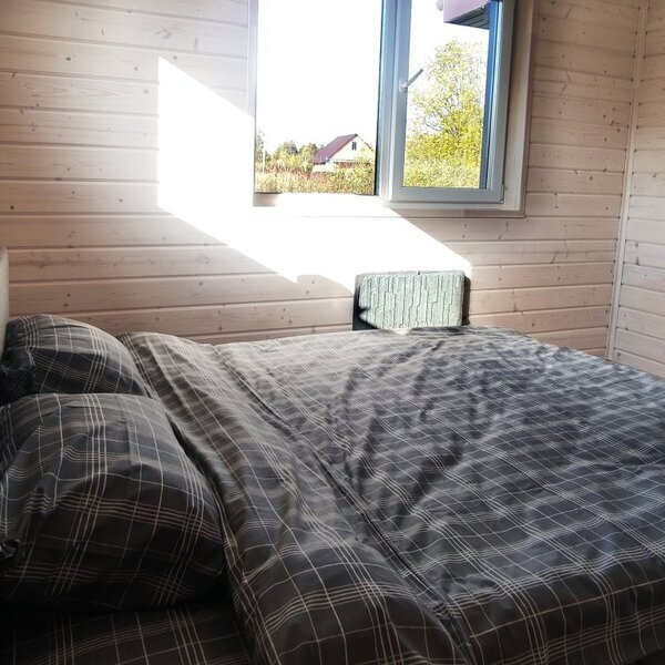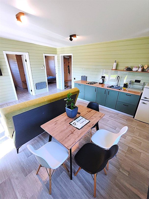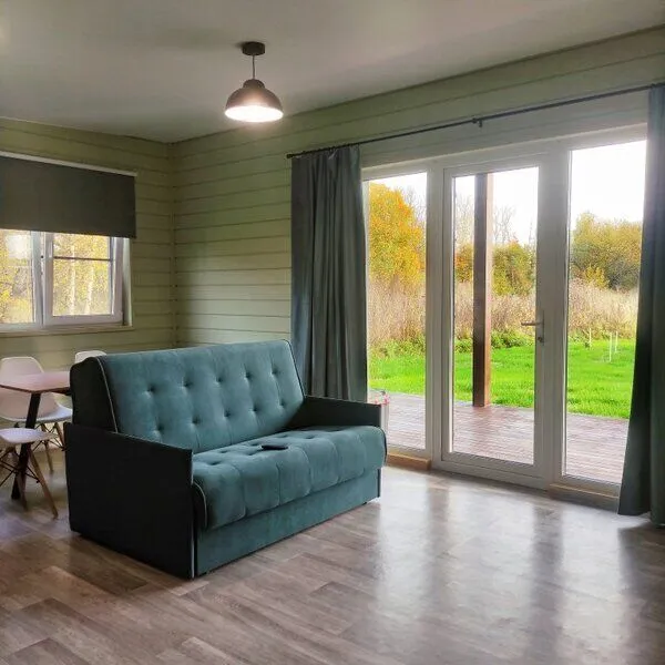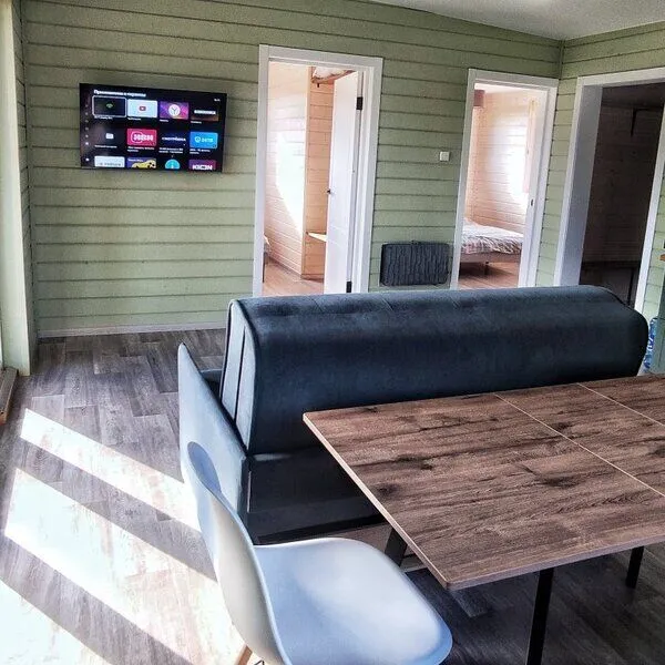 Большой теплый каркасный дом с гостиной в зеленых тонах и видом на восход. Окна гостиной выходят на газон и дровницу. Собственный дворик и крытый мангал с решеткой. Две отдельные спальни (4 основных места), кухня-гостиная с раскладным диваном (2 доп места), санузел с душевой, широкая веранда с уличной мебелью. Максимальная вместимость дома 6 человек. Проживание с питомцами без доплаты. Дети до 3 лет проживают бесплатно без предоставления места. Комплектация дома по ссылке: https://disk.360.yandex.ru/i/urdpwuaiaN8H1gУслуги и удобства