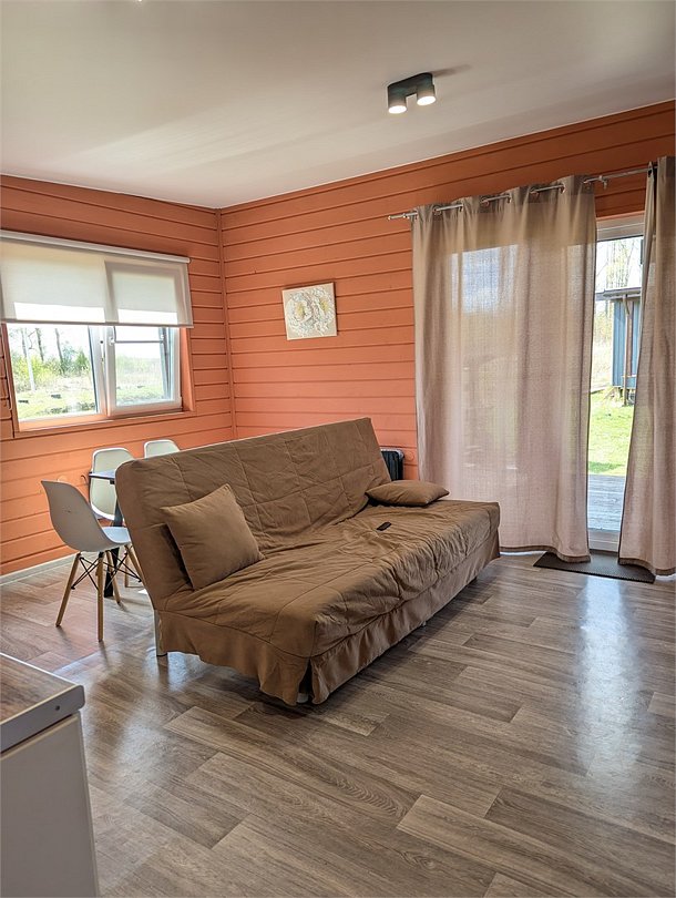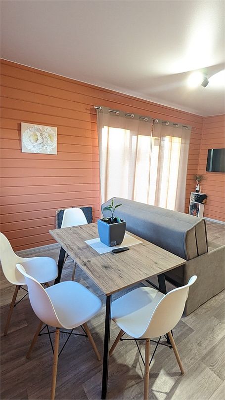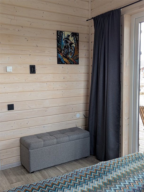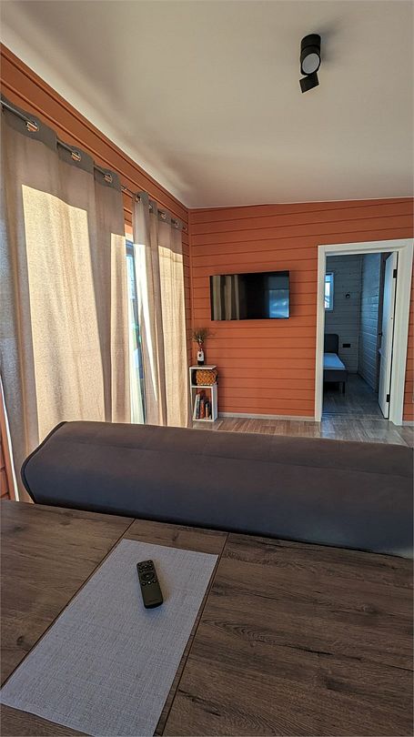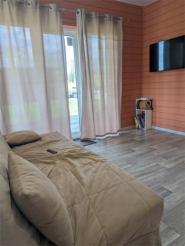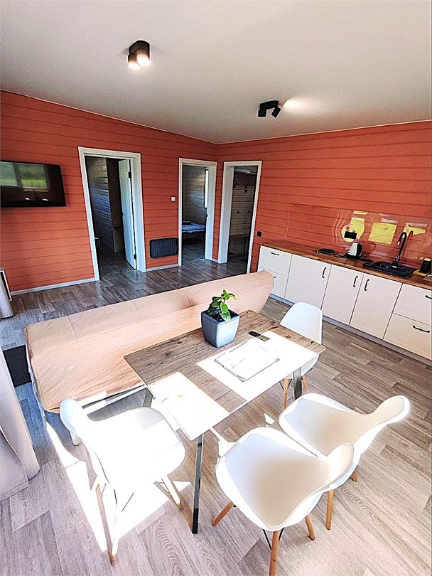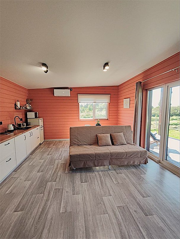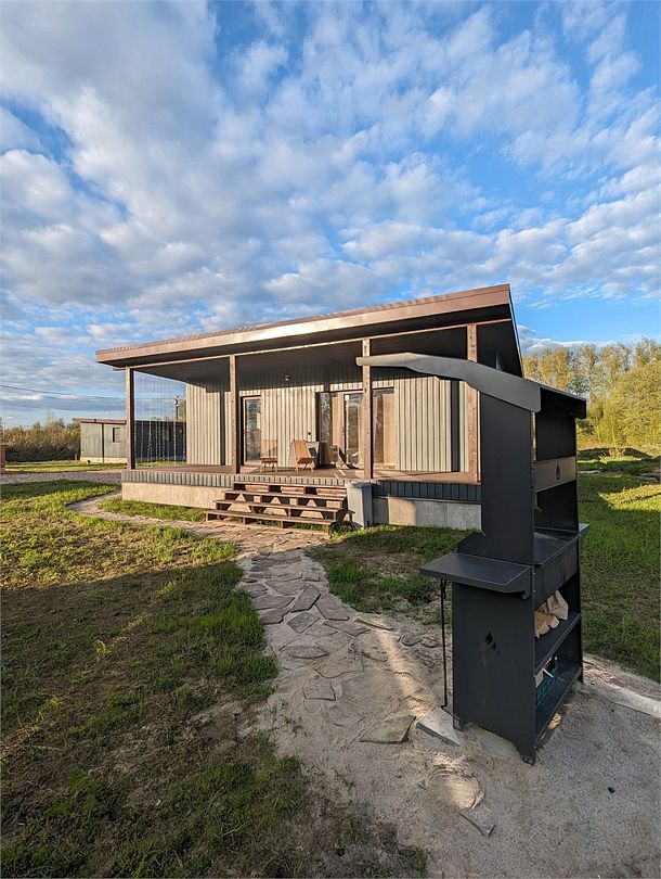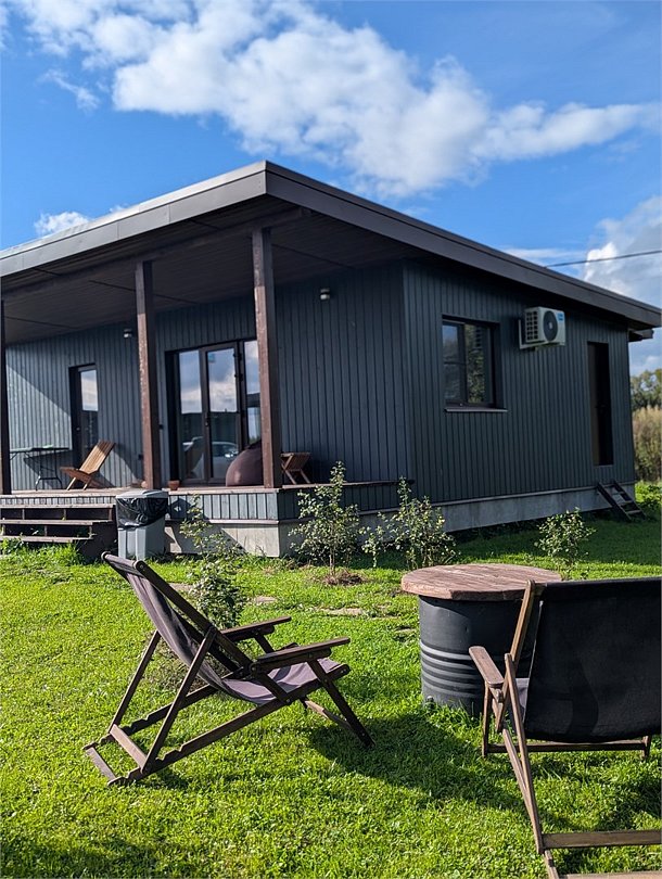 Самый теплый дом с гостиной в красно-коричневых тонах. Возможно из-за цвета стен, возможно из-за расположения. А еще с его веранды можно наблюдать великолепные закаты. Две отдельные спальни, диван кровать в гостиной. Максимальная вместимость дома 6 человек. Огромная веранда с уличной мебелью, крытый мангал с решеткой в комплекте. Проживание с питомцами приветствуется, без доплат! Для дневных мероприятий доступна опция "Вечеринка", позволяющая увеличить количество дневных гостей (без ночевки) до 10. Полная комплектация дома: https://disk.360.yandex.ru/i/urdpwuaiaN8H1gУслуги и удобства