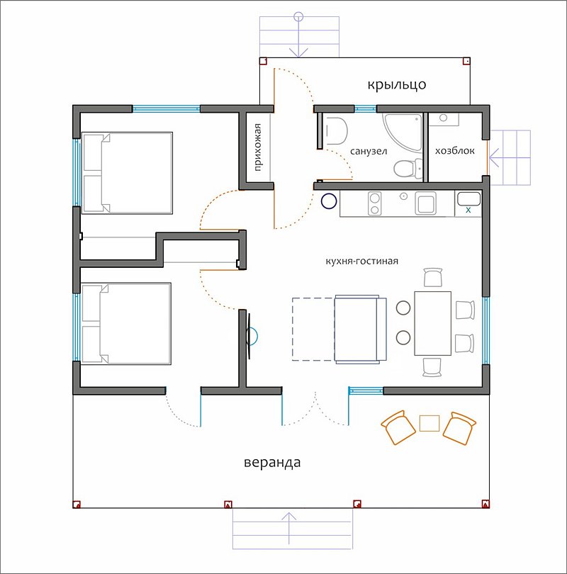 76 м2 · 4-х местный коттедж + 2 доп. места