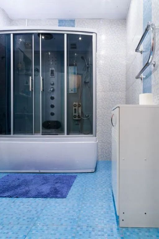 В гостиной расположены 2 дивана, телевизор и мини-бар, в спальной – 2-спальная кровать и телевизор. Ванная комната оснащена душевой кабиной с гидромассажем.
