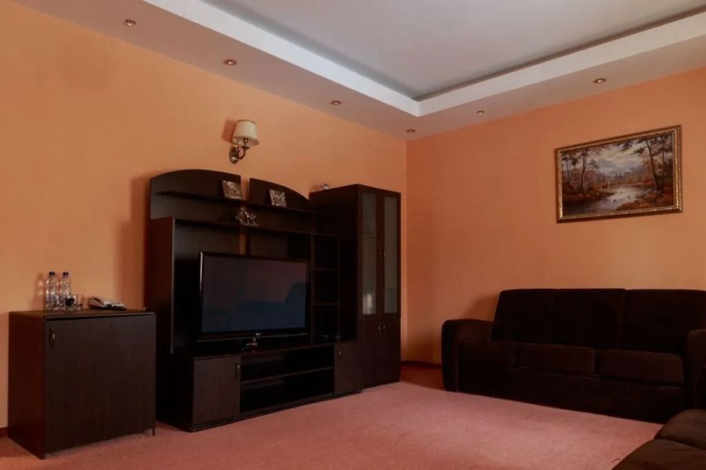 Номера класса «Апартаменты» рассчитаны на 4-7 человек. В номере: 1 гостиная с кухней и 2 спальни (одна двуспальная кровать и две односпальные).