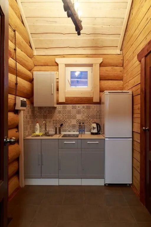 Бревенчатый дом с одной спальней и кухней.