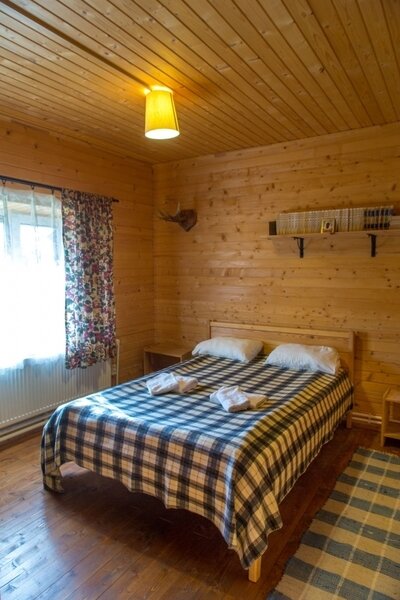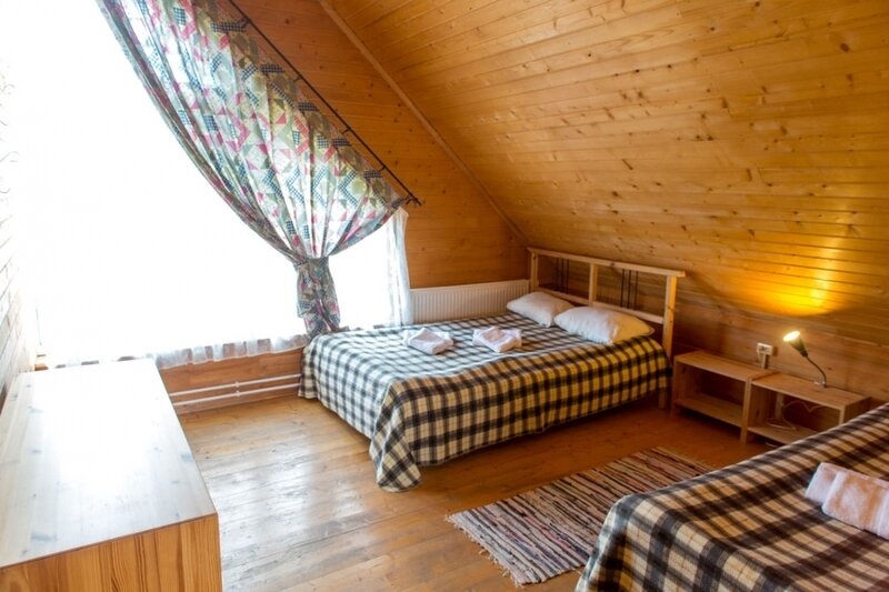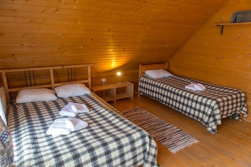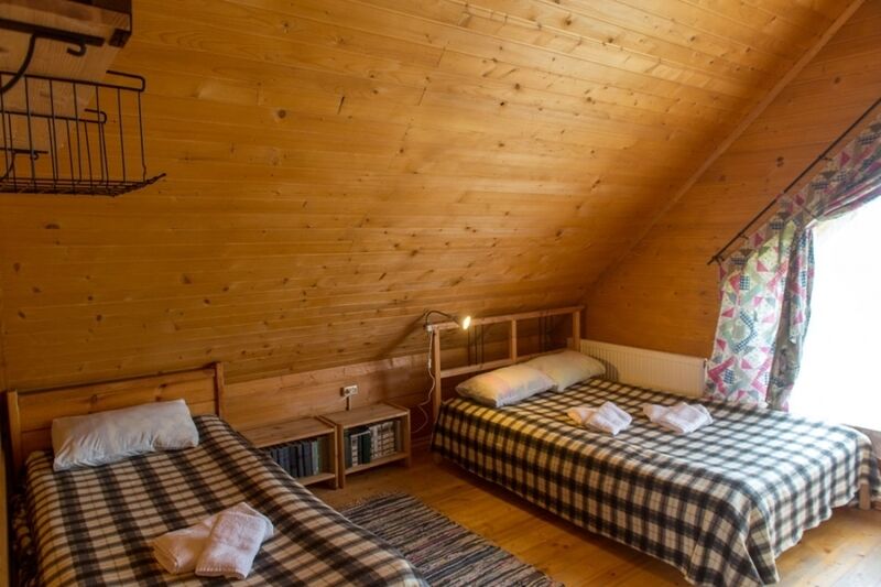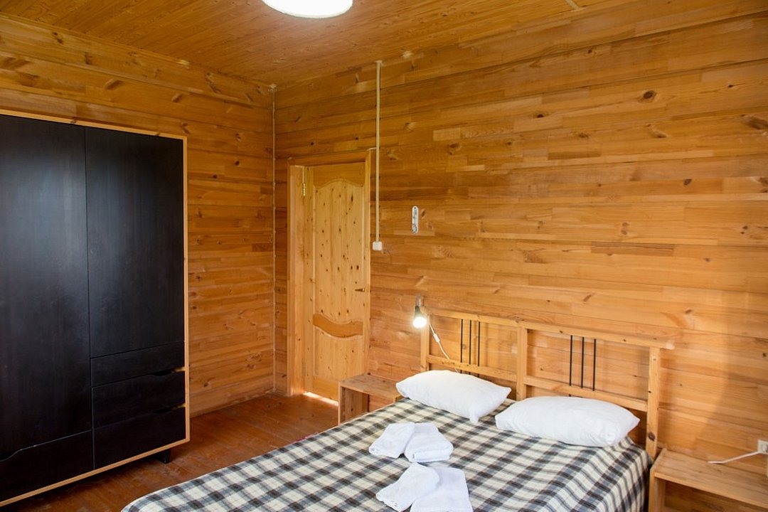На 2-ом этаже: санузел, две спальни с трехместным размещением (двуспальная и односпальная кровати), одна спальня с одноместным размещением.