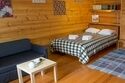На 1-ом этаже: совмещенный санузел, одна спальня с двухместным размещением, кухня-гостиная с диван- кроватью.