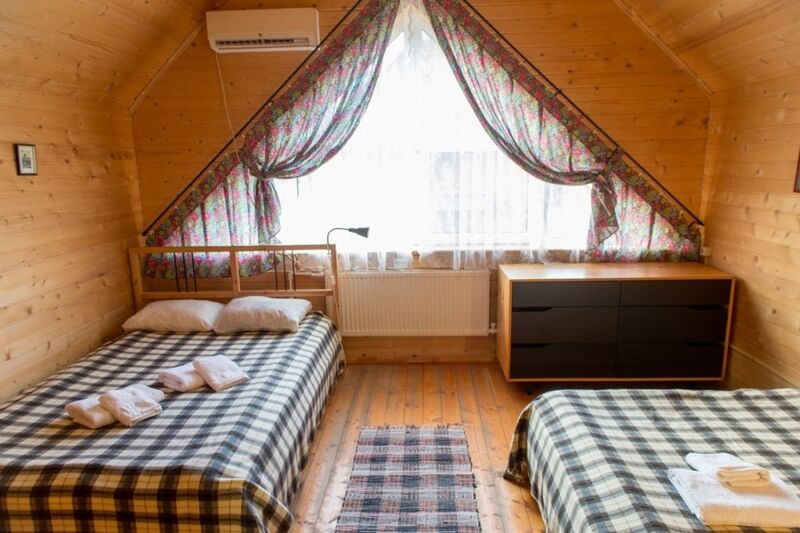 На 2-ом этаже: санузел, две спальни с трехместным размещением (двуспальная и односпальная кровати).