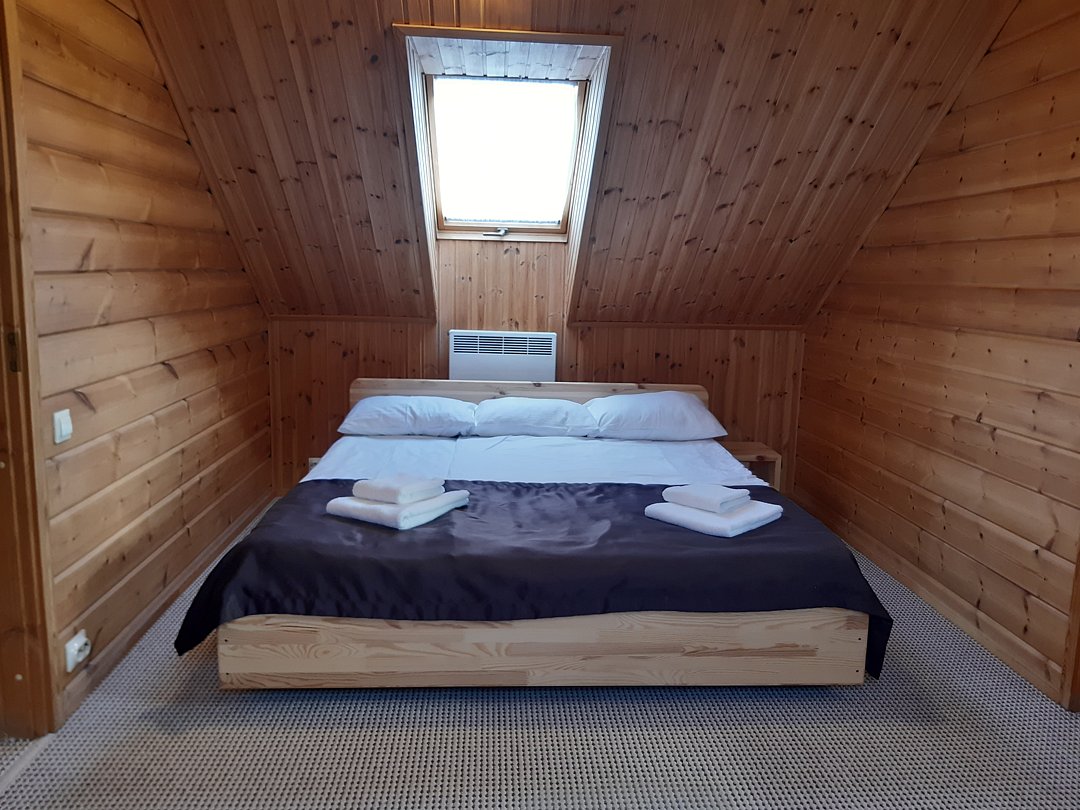 Первый этаж: гостиная с дровяным камином, спальня с двумя односпальными кроватями, кухня - столовая, сушильный шкаф, сауна, санузел с душем.