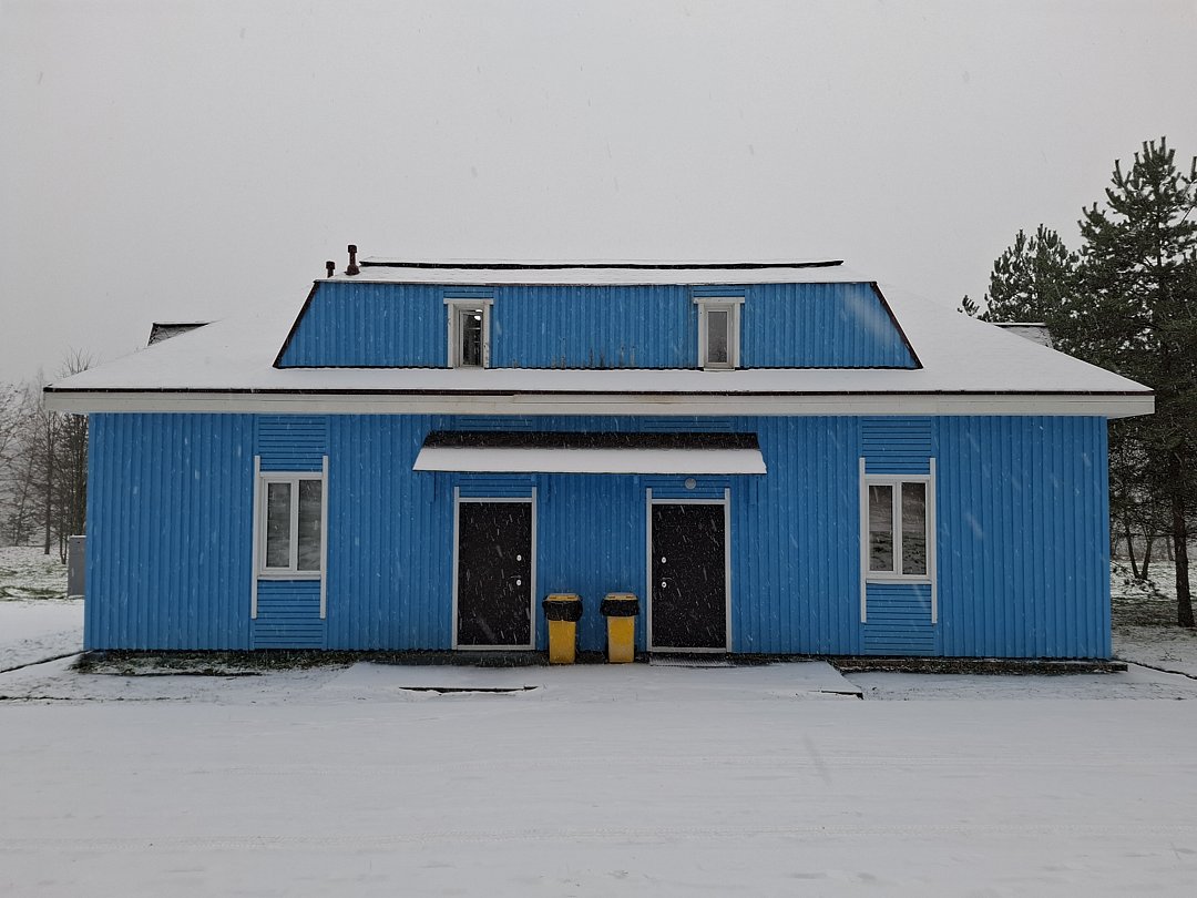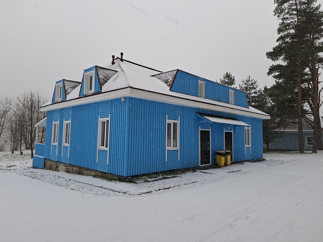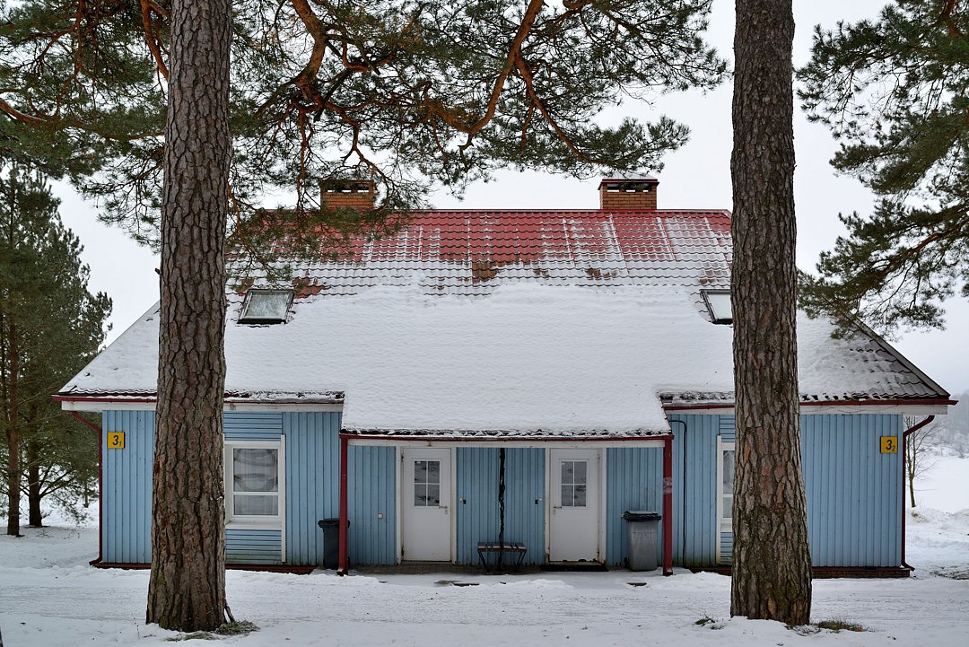 Первый этаж: гостиная с дровяным камином, спальня с двумя односпальными кроватями, гардеробная, кухня, сушильный шкаф для одежды, сауна, санузел с душем.