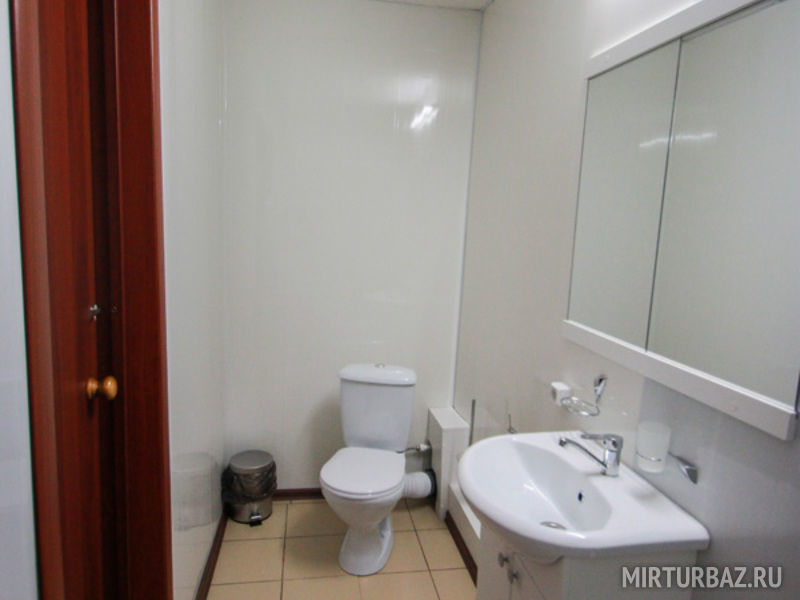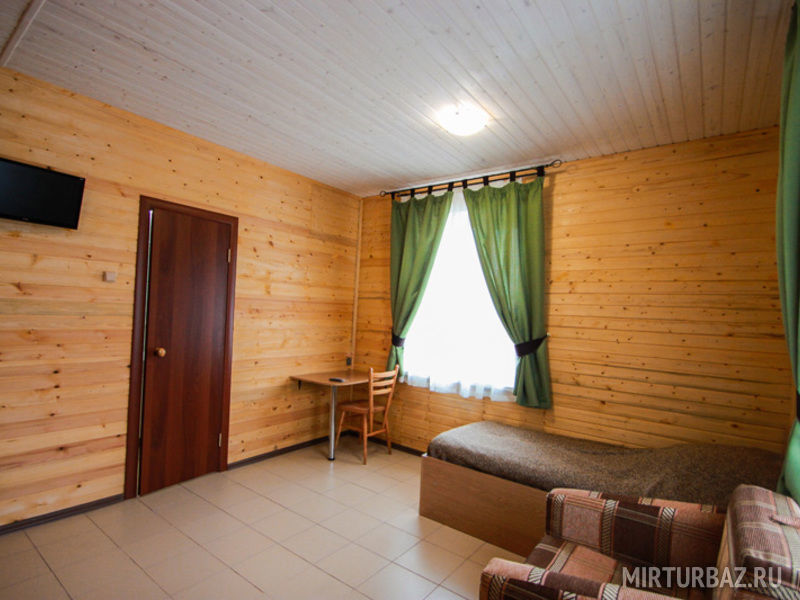 В каждом номере имеется 2 односпальные кровати, кресло, стол, вешалка для одежды. Ну и конечно, в каждом номере имеется санузел, а именно: душ, туалет и умывальник. Что касается комплекта белья для гостей, то посетителям предоставляется по три полотенца на каждого (большое банное, для рук и для ног).