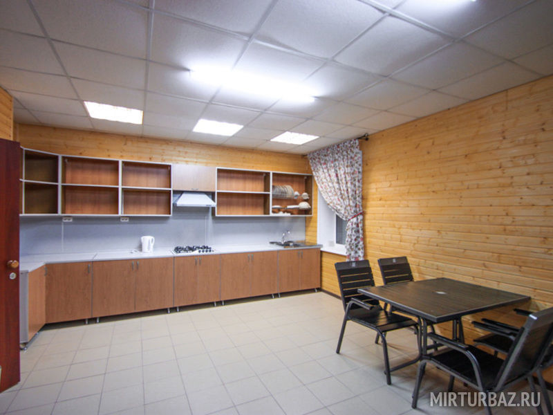 На общей кухне есть холодильник, микроволновая печь, вся необходимая посуда и кухонная утварь, общий стол и стулья.