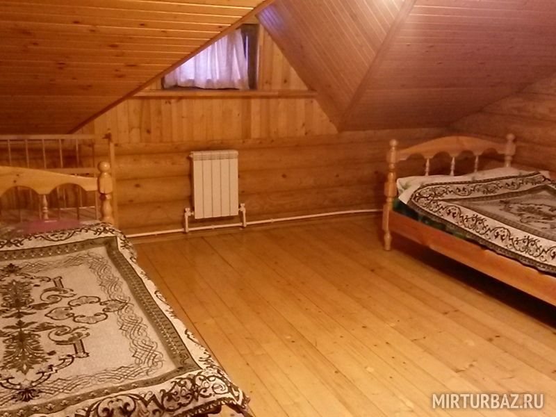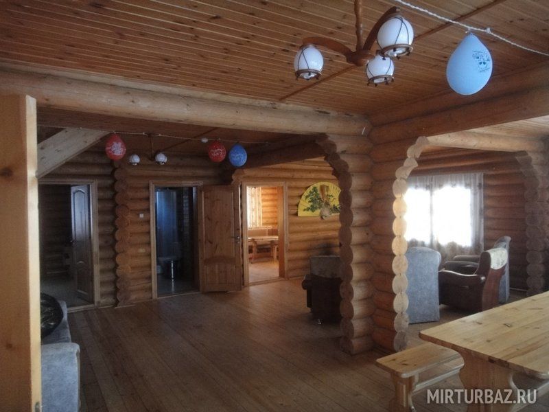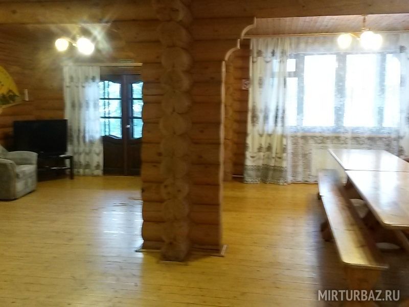 В доме на первом этаже большой зал 64 кв. м, кухня с электроплитой, микроволновой печью, электрочайником, холодильником, санузел с душевой кабиной, одна спальня с двумя двухместными кроватями. На втором этаже четыре спальни с двумя двухместными кроватями в каждой комнате, санузел.