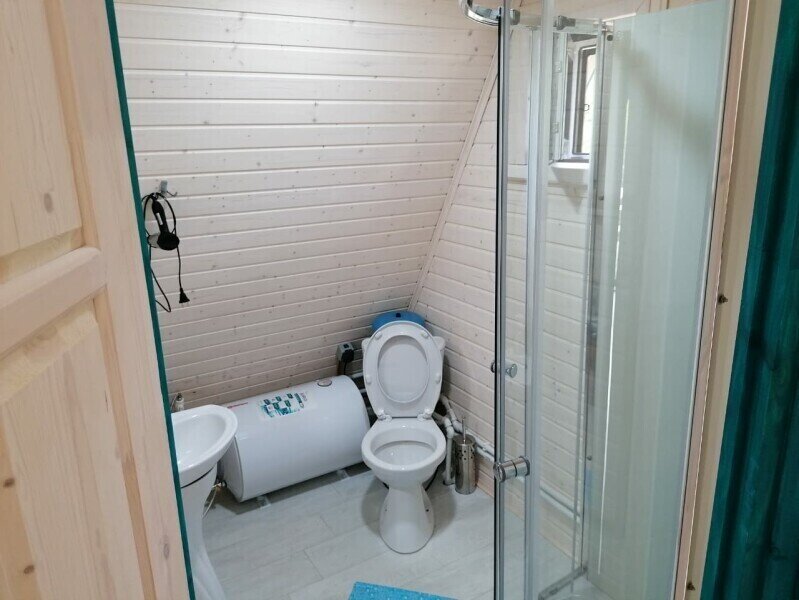 - В каждом доме персональный туалет с душевой кабиной и всем необходимым для проживания.