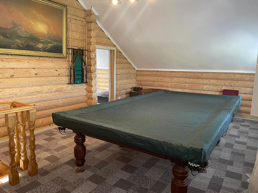 На втором этаже расположен американский бильярд, спальная комната с 4 односпальными кроватями и выход на балкон.