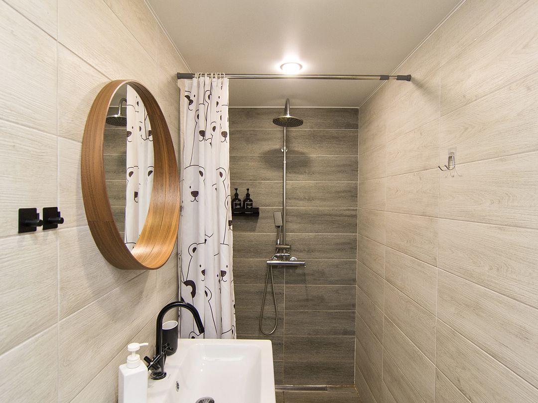 Небольшой уютный барнхаус для 2 человек с двуспальной кроватью, собственным санузлом, мини-кухней, кондиционером и конвектором.