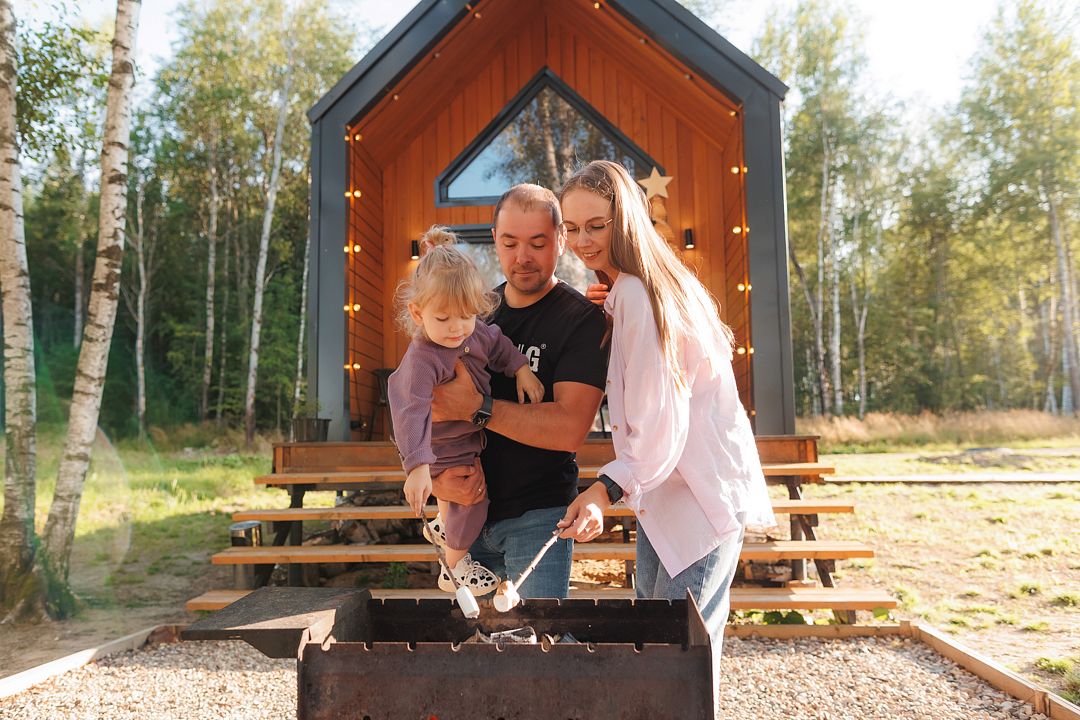 Для незабываемых вечеров в кругу близких оборудованы специальные зоны барбекю с мангалами рядом с каждым домиком.