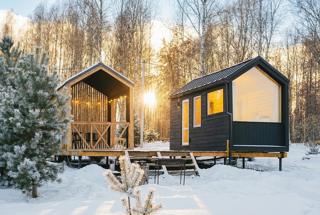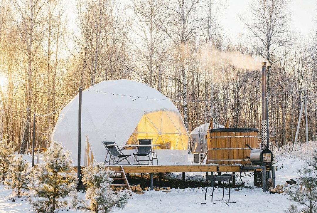 Современные дома в стиле барнхаус с панорамными окнами и эффектным дизайном создают уютную атмосферу, а вечером, когда зажигаются огни и потрескивает огонь в камине, легко почувствовать себя на роскошном курорте. А комфортабельные геокуполы подарят ощущение полного единения с природой.