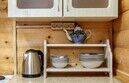 Профессиональный мангал, казан, обеденная зона на 20 человек, зона приготовления пищи, кухонная мойка, посуда, столовые приборы, дрова.