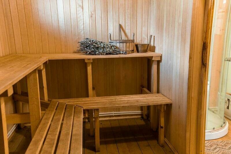 - Русская баня на дровах. Минимальная аренда — 3 часа. Стоимость для компании до 8 человек — 2000 ₽/час, свыше 8 человек доплата — 300 ₽/человек за сеанс.