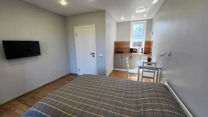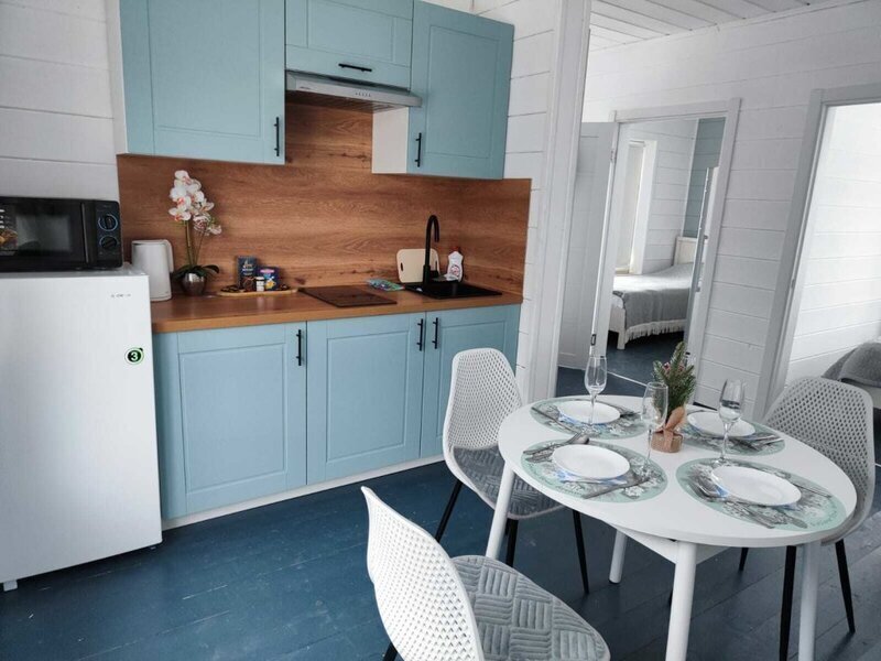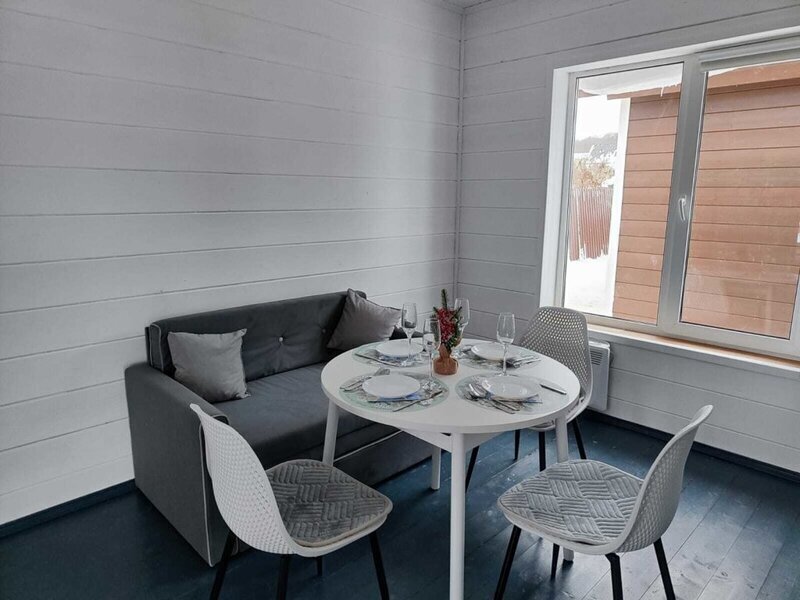 Предлагаются уютные домики с удобными кроватями, гигиеническими средствами в ванной комнате, телевизором, беспроводным интернетом. Имеется собственная терраса.