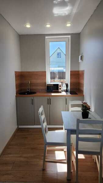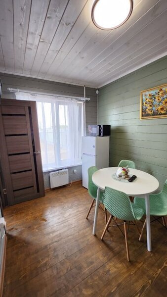 Кухня обустроена необходимой бытовой техникой и посудой. В шаговой доступности есть продовольственные магазины и кафе.
