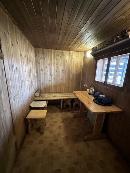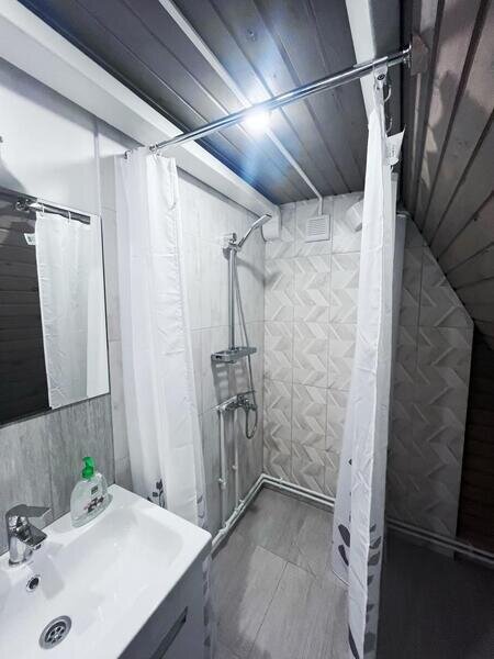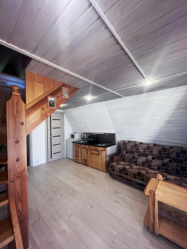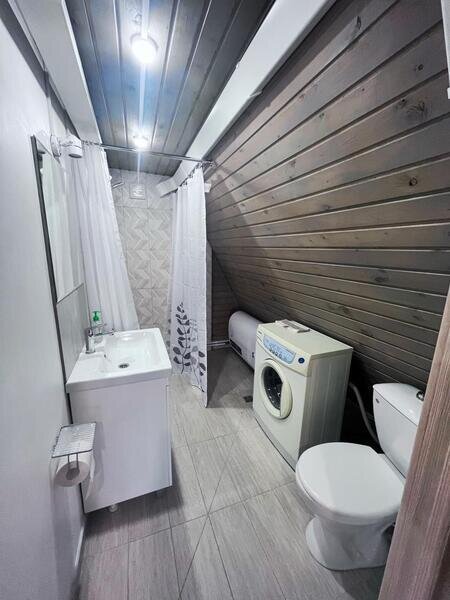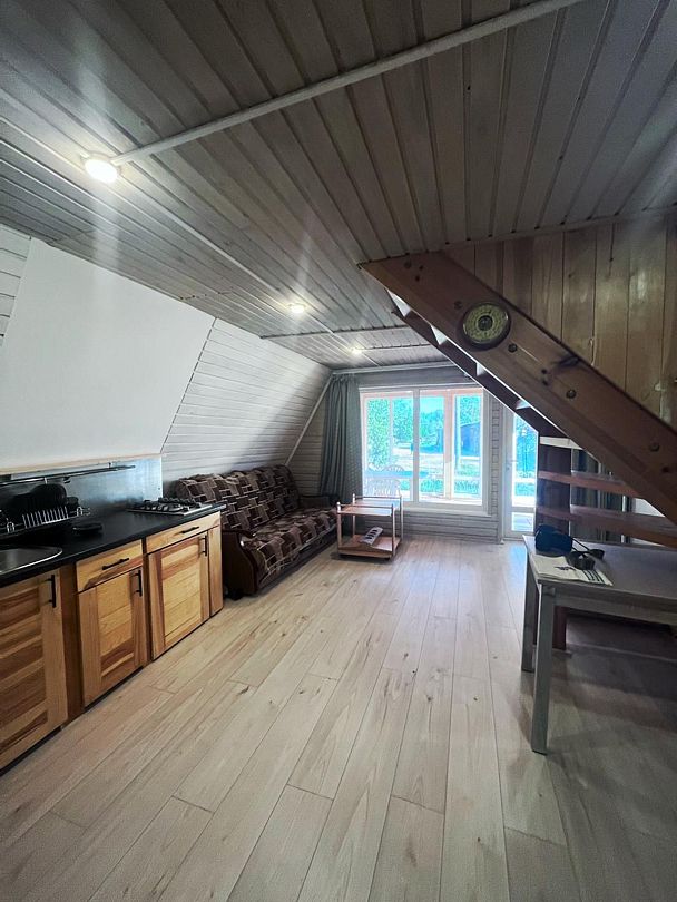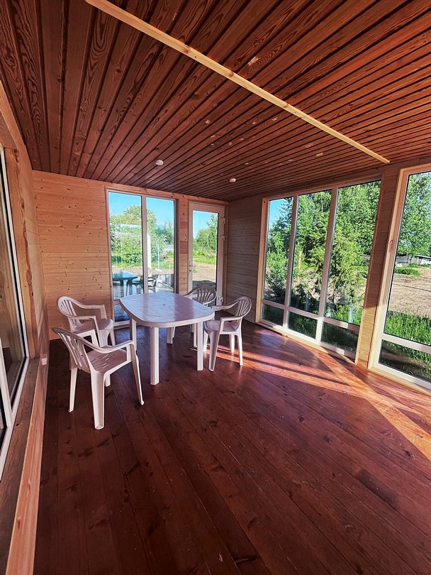 В доме две спальни, гостиная, полностью оборудованная кухня, большая закрытая веранда и санузел с душем. Есть доступ к Wi-Fi, а вода из крана пригодна для питья. Территория дома огорожена, есть парковка для автомобиля. Также есть мангальная зона и баня на дровах.