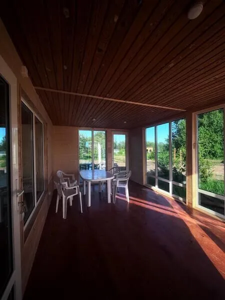 Новый, уютный дом с двумя спальнями, гостиной, полностью оборудованной кухней, большой закрытой верандой, санузел с душем.