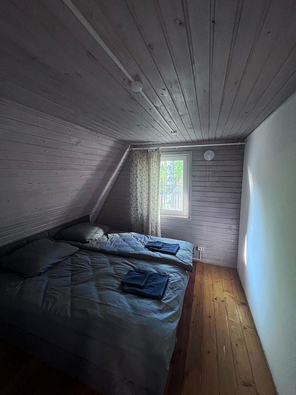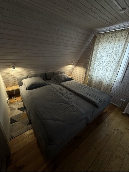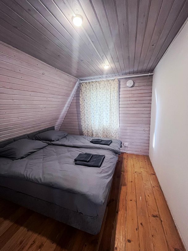 В доме комфортно размещаются 4 человека, в гостиной на диване можно организовать ещё два дополнительных спальных места, для малыша есть детская кроватка.
