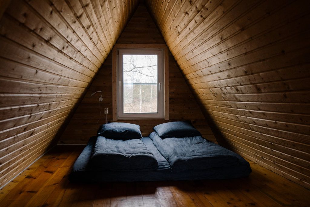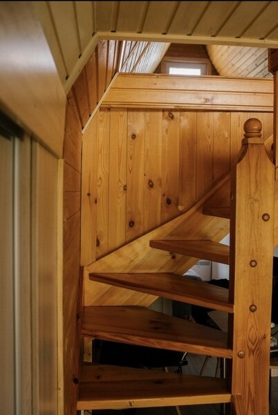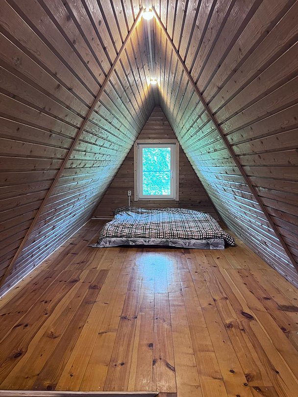 А-фрейм с большой закрытой верандой и 2-мя спальнями.