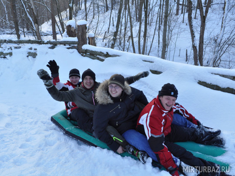 - С тюбингом и ватрушками