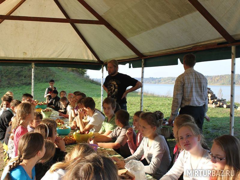 Внизу, на берегу реки Волга стоят две отдельные крытые палатки для проведения массовых мероприятий до ста человек. На поляне можно разместить любое количество столов, лавочек, мангалов и т.д., провести выпускной, юбилей, свадьбу, день рождения, корпоратив, поиграть в пляжный волейбол, футбол, бадминтон, настольный теннис, сумобол («регби» в больших поролоновых костюмах).Наименование услуги