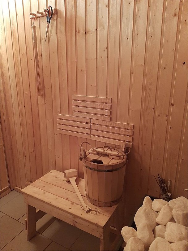 - Парной с уникальным набором камней (жадеит, яшма, малиновый кварц, нефрит) для лечения и расслабления. Полы в парной с подогревом, нет эффекта: «ноги станут, а голова горит».