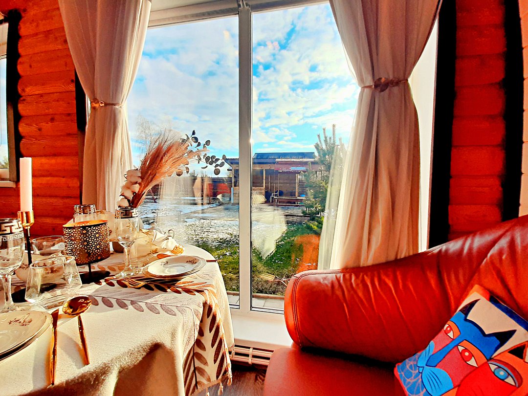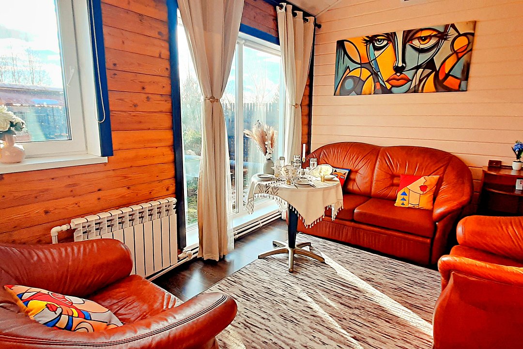 Комфортный дом с панорамными видами в гостиной. Собственная приватная территория с мангальной зоной и крытой верандой.