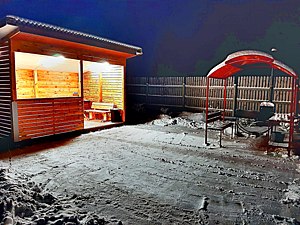 - большая мангальная зона с крытой верандой и блютуз-колонкой.