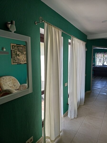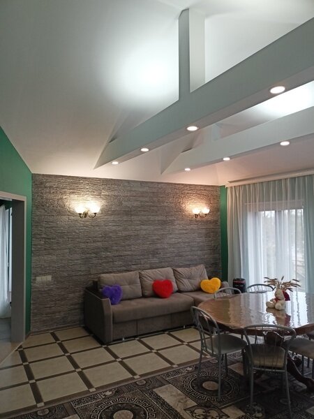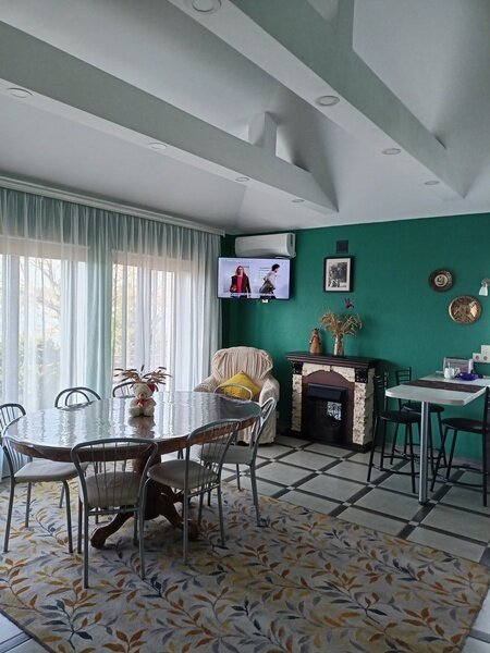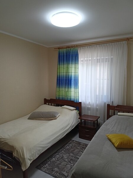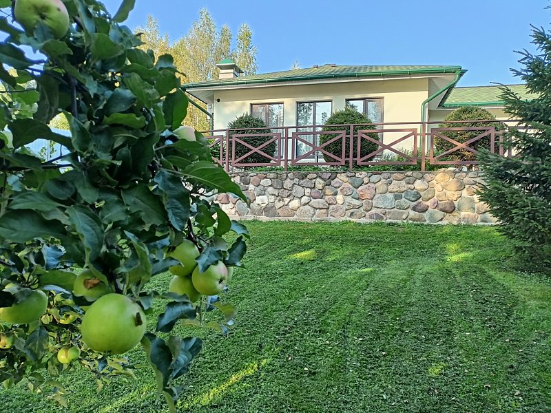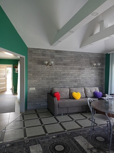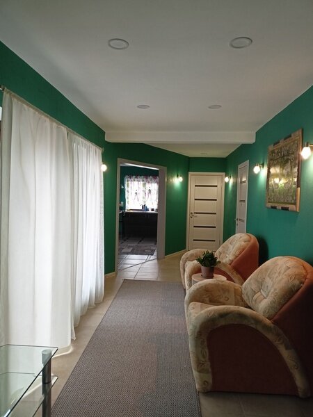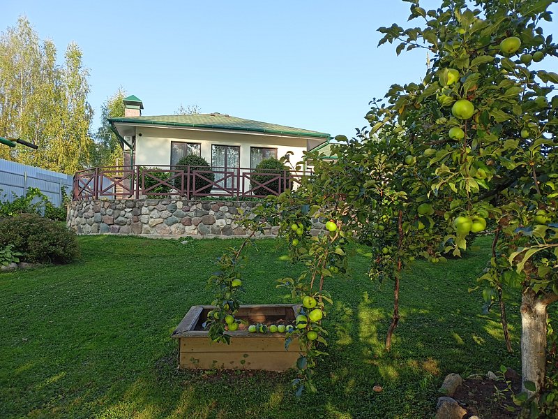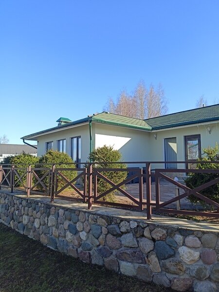 В доме небольшая электрическая сауна (погреться), кухня, три спальни в одной кровать на 160 см плюс детская кроватка, вторая спальня — кровать на 120 и 90 см. Третья спальня — кровать на 120 и 90. Гостиная — раскладной двухсторонний диван, два туалета, душ, Wi-Fi.
