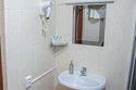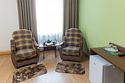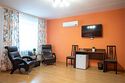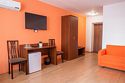 Просторный светлый номер, площадь 21м. кв. Стандартная мебель: 2 кровати 90 см или 1 двухспальная - 140 см, 2 тумбочки, стол, 2 стула, разборный французский диван, журнальный столик, шкаф-гардероб, багажница. Сан узел, душевая кабина в номере, укомплектованы полотенцами, одноразовой косметикой. Есть фен, зеркало, светильник.Услуги и удобства